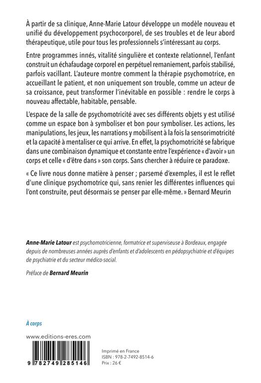 Entre programmes innés, vitalité singulière et contexte relationnel, l’enfant construit un échafaudage corporel en perpétuel remaniement, parfois stabilisé, parfois vacillant. L’auteure montre comment la thérapie psychomotrice, en accueillant le patient, et non uniquement son trouble, comme un acteur de sa croissance, peut transformer l’inévitable en possible : rendre le corps à nouveau affectable, habitable, pensable.