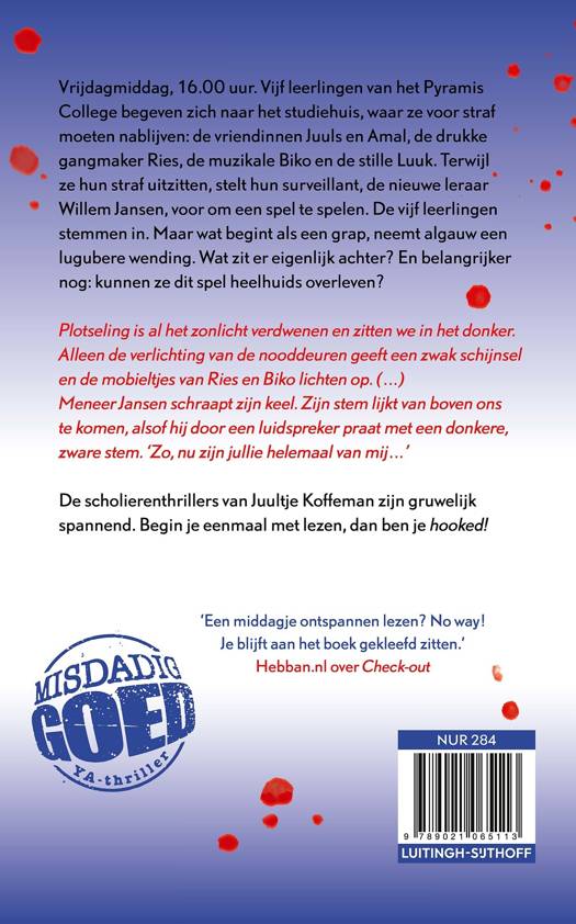 Vrijdagmiddag, 16.00 uur. Vijf leerlingen van de middelbare school Pyramis begeven zich naar het studiehuis, waar ze voor straf moeten nablijven: de vriendinnen Juuls en Amal, de gangmaker en clown van de klas Ries, de rustige Biko en de introverte Luuk. Terwijl de vijf hun straf uitzitten, stelt hun surveillant, de nieuwe docent Willem Jansen, voor om een spel te spelen. De vijf stemmen in, maar het spel neemt algauw een lugubere wending… Wat zit erachter? En belangrijker nog: zullen ze dit spel heelhuids overleven?