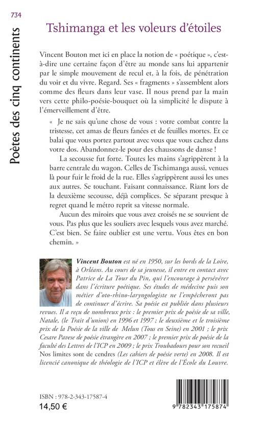 Vincent Bouton met en place dans ce recueil une notion d’être au monde sans pour autant lui appartenir. Ses « fragments » s’assemblent comme des fleurs dans leur vase. Il nous prend par la main vers cette philo-poésie-bouquet où la simplicité le dispute à l’émerveillement d’être.