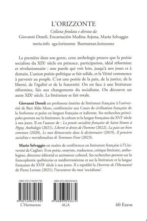 La vraie poésie parle pour les pauvres, les humbles, les opprimés, les vaincus, les battus, les malades, les inconnus et les imprévus qui se montrent, qui souffrent, qui connaissent la véritable douleur, quelque part, en France et dans le monde entier. La poésie socialiste de cette anthologie libère la vie et le rêve, le travail et le droit au rêve, en restant un langage du cur, sans un but d'utilité, tout en étant très utile. La poésie socialiste du XIXe siècle est politique et idéale. Elle est dans son temps et dans le nôtre, et dans tout temps. Elle lutte contre l'industrialisation sans règles et l'occidentalisation destructrice attaquée aussi par Baudelaire. C'est la poésie de l'angoisse de l'être : elle nous dit qu'il faut avoir un regard sur le monde, et proposer des réformes indispensables, pour faire sortir le peuple de sa terrible condition. Le XIXe siècle donne à la poésie une chance énorme : celle de pousser les gouverneurs aux réformes nécessaires, pour l'école, l'économie, le travail, la situation dégradée des villes, les campagnes abandonnées. C'est une poésie vivante, qui s'ouvre à toute frontière. On est face à une parole qui change le monde. Elle fait peur parce qu'elle dit la vérité de la justice, de la révolution des curs, de la politique-philosophie de la vie. On pourrait parler d'une littérature née de la démocratie socialiste tout court et du réformisme républicain. Encore une fois, le concept de culture et celui de culture populaire sont à revoir. Celui de littérature lui aussi. La première dans son genre, cette anthologie prouve que la poésie socialiste du XIXe siècle est présence, participation, idéal réformiste et révolutionnaire : une parole qui voit loin, jusqu'à nos jours et à demain. L'union poésie-politique se fait solide, et la Vérité commence à parvenir au peuple. C'est une poésie de la paix, de la justice, de la liberté, de l'égalité et de la fraternité. On est face à une littérature réformiste, liée aux changements du socialisme. On découvre un autre XIXe siècle. La littérature se fait totale.