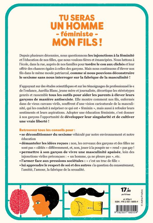 S’appuyant sur des études scientifiques et sur les témoignages de professionnel·le·s de l’enfance, Aurélia Blanc, jeune mère et journaliste, décortique les stéréotypes genrés et rassemble tous les outils pour aider les parents à élever leurs garçons de manière antisexiste. Elle montre comment nos fils, enfermés dans de vieux carcans virils, souffrent d’une vision caricaturale de la masculinité, qui les conduit à mépriser ce qui est « féminin », mais aussi à refouler leurs sentiments et leurs aspirations. Adopter une éducation féministe, c’est donner à nos garçons l’opportunité de développer leur singularité et de cultiver une vraie liberté !
