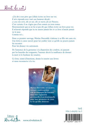 Dans ce premier ouvrage, Marine Duvouldy s’adresse à sa fille née sans vie. Une lettre à cœur ouvert pour lui confier tout ce qu’elle ne pourra jamais lui raconter. Pour lui donner vie autrement.