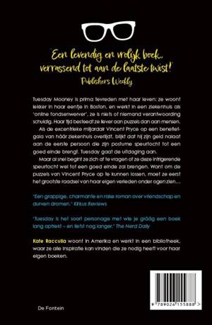 Tuesday Mooney is prima tevreden met haar leven: haar tijd besteedt ze liever aan puzzels dan aan mensen. Als de excentrieke miljardair Vincent Pryce overlijdt en Tuesday hoort dat hij zijn geld nalaat aan de eerste persoon die zijn speurtocht tot een goed einde brengt, gaat Tuesday de uitdaging aan. Maar al snel begint Tuesday zich af te vragen of ze deze intrigerende speurtocht wel tot een goed einde zal brengen. Want om de puzzels van Vincent Pryce op te kunnen lossen, moet ze eerst het raadsel van haar eigen verleden onder ogen zien…