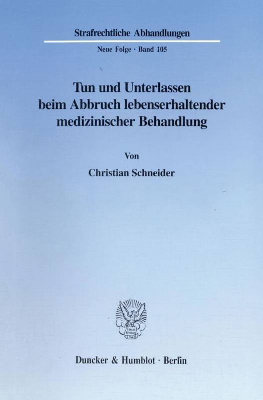 Der Abbruch einer mit technischen Hilfsmitteln betriebenen medizinischen Behandlung berührt grundlegende Fragen aus dem Bereich des Allgemeinen Teils des Strafrechts sowie der Sterbehilfethematik. Bei der Abgrenzung von Tun und Unterlassen schlägt der Autor eine Kombination von ontologischen und normativen Elementen in der Art eines zweistufigen Prüfungsverfahrens vor. Während derart das Abstellen eines medizinischen Geräts durch den behandelnden Arzt als Unterlassen zu bewerten ist, stellt sich das äußerlich identische Verhalten eines Dritten als aktives Tun dar. Ein Behandlungsabbruch, der dem Wunsch des Patienten entspricht, ist in jedem Fall straflos, auch wenn dadurch der Tod des Patienten zurechenbar herbeigeführt und der Tatbestand des