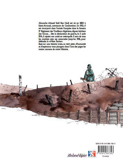 Basé sur les parcours de l'arrière grand-père de Kamel Mouellef et de son arrière grand-oncle, Turcos nous raconte tout d'abord une histoire d'hommes, des poilus qui ont combattu dans les tranchées, loin de chez eux, pour une Mère Patrie que la plupart ne connaissaient pas avant d'arriver sur le sol de France. À travers ces deux soldats, sont évoqués le rôle et la place des combattants indigènes dans l'armée française avec l'idée de montrer et surtout de raconter des histoires personnelles (exclusivement fictives) sur un arrière-plan réel et historique, celui de la Première guerre mondiale, le tout préfacé par Yasmina Khadra et scénarisé par Tarek (Sir Arthur Berton). Format : 220 x 290, 64 pages couleur, couverture cartonnée. Placement : BD Docs.