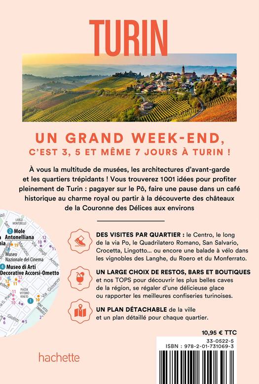 • Des expériences uniques et des activités originales : descendre le Pô en canoë, le fleuve le plus long d’Italie, fabriquer sa propre tablette de chocolat au musée du Chocolat, délice emblématique de Turin, se promener sur le toit du Lingotto, ancien site industriel de Fiat, et fouler les pistes autrefois dédiées aux tests du constructeur italien… • Les meilleures adresses soigneusement sélectionnées par nos auteurs : les plus beaux cafés d’époque, les meilleurs glaciers, nos boutiques gourmandes préférées… • Des quartiers à parcourir en prenant son temps, en mixant les visites culturelles, les jolies boutiques, les pauses dans un resto cosy ou en terrasse. • Et aussi : des excursionsà Langhe, Roero et Monferrato. • Un carnet pratique avec toutes les infos utiles.