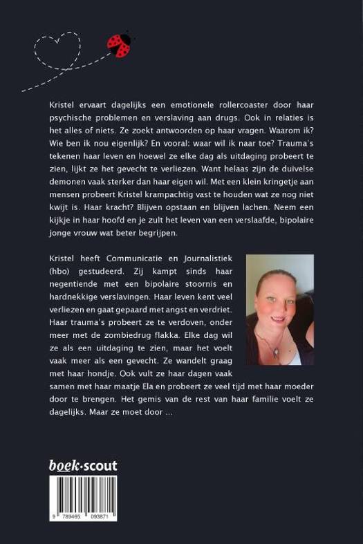 Kristel ervaart dagelijks een emotionele rollercoaster door haar psychische problemen en verslaving aan drugs. Ook in relaties is het alles of niets. Ze zoekt antwoorden op haar vragen. Waarom ik? Wie ben ik nou eigenlijk? En vooral: waar wil ik naar toe? Trauma's tekenen haar leven en hoewel ze elke dag als uitdaging probeert te zien, lijkt ze het gevecht te verliezen. Want helaas zijn de duivelse demonen vaak sterker dan haar eigen wil. Met een klein kringetje aan mensen probeert Kristel krampachtig vast te houden wat ze nog niet kwijt is. Haar kracht? Blijven opstaan en blijven lachen. Neem een kijkje in haar hoofd en je zult het leven van een verslaafde, bipolaire jonge vrouw wat beter begrijpen.