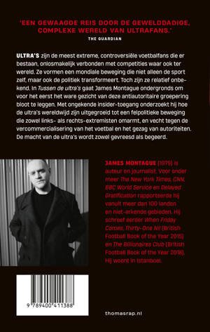 Ultra’s zijn de meest extreme, controversiële voetbalfans die er bestaan, onlosmakelijk verbonden met competities waar ook ter wereld. Ze vormen een mondiale beweging die niet alleen de sport zelf, maar ook de politiek transformeert. Toch zijn ze relatief onbekend. In Tussen de ultra’s gaat James Montague ondergronds om voor het eerst het ware gezicht van deze antiautoritaire groepering bloot te leggen. Met ongekende insider-toegang onderzoekt hij hoe de ultra’s wereldwijd zijn uitgegroeid tot een felpolitieke beweging die zowel links- als rechts-extremisten omarmt, vecht tegen de vercommercialisering van voetbal en de samenleving door de autoriteiten. De macht van de ultra’s wordt gevreesd, maar ook begeerd.