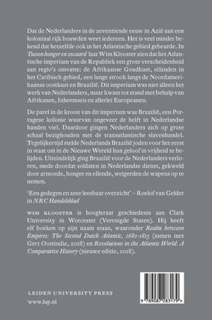 Dat de Nederlanders in de zeventiende eeuw in Azië aan een koloniaal rijk bouwden weet iedereen. Het is veel minder bekend dat hetzelfde ook in het Atlantische gebied gebeurde. In Tussen honger en zwaard laat Wim Klooster zien dat het Atlantische imperium van de Republiek een grote verscheidenheid aan regio’s omvatte: de Afrikaanse Goudkust, eilanden in het Caribisch gebied, een lange strook langs de Noordamerikaanse oostkust en Brazilië. Dit imperium was niet alleen het werk van Nederlanders, maar kwam tot stand met behulp van Afrikanen, Inheemsen en allerlei Europeanen. De parel in de kroon van dit imperium was Brazilië, een Portugese kolonie waarvan ongeveer de helft in Nederlandse handen viel. Daardoor gingen Nederlanders zich voor het eerst op grote schaal bezighouden met de transatlantische slavenhandel. Tegelijkertijd stelde Nederlands Brazilië joden voor het eerst in staat om in de Nieuwe Wereld hun geloof in vrijheid te belijden. Uiteindelijk ging Brazilië voor de Nederlanders verloren, mede doordat soldaten in Nederlandse dienst, gekweld door armoede, honger en ellende, weigerden de wapens op te nemen.