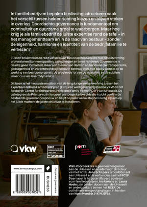 Dit boek is het nieuwste resultaat van de langdurige samenwerking tussen het Expertisecentrum Familiebedrijven (EFB) van werkgeversorganisatie VKW en het Research Center for Entrepreneurship and Family Firms (RCEF) van UHasselt. De geïntegreerde Prisma-scan fungeert als toegankelijke gids die inzicht geeft in de bestaande governanceopbouw en helpt bepalen welke stappen nodig zijn om op het juiste moment de juiste structuur te installeren.