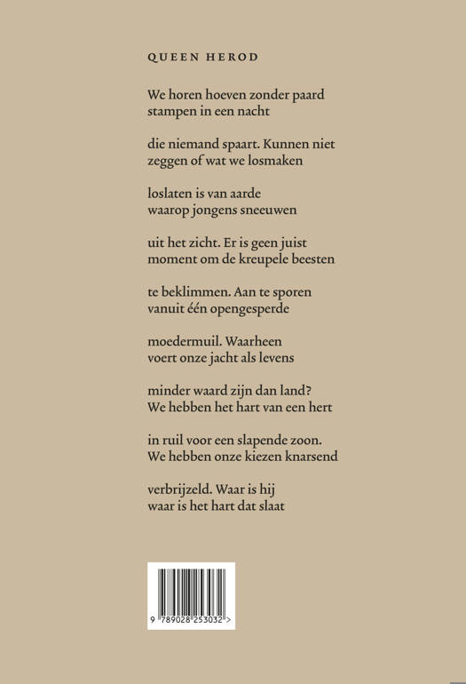 Is het mogelijk om samen te vallen met jezelf als je jezelf voortdurend vanuit verschillende perspectieven bekijkt? Wie heeft deze perspectieven bepaald? Is het mogelijk ervan los te komen? Tegen een achtergrond van dagelijkse beslommeringen zoals grasmaaien om slakken heen, rijden door de mist, vanuit de tram een glimp opvangen van flamingo’s, tasten de gedichten in Tussen mij af hoe het lichaam en het (onder)bewustzijn zich tot elkaar verhouden. Kunnen het aanwezige en het afwezige ooit samenvallen?