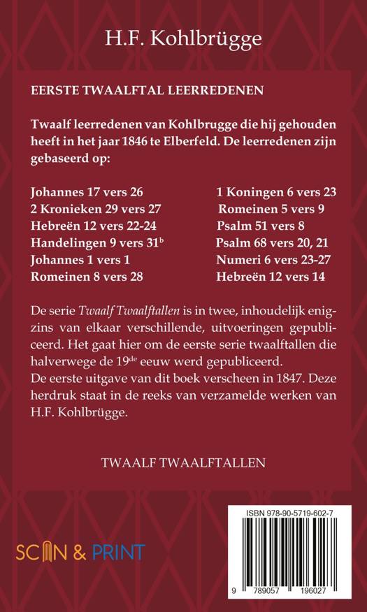 De serie Twaalf Twaalftallen is in twee, inhoudelijk enigzins van elkaar verschillende, uitvoeringen gepubliceerd. Het gaat hier om de eerste serie twaalftallen die halverwege de 19de eeuw werd gepubliceerd. De eerste uitgave van dit boek verscheen in 1847. Deze herdruk staat in de reeks van verzamelde werken van H.F. Kohlbrügge.