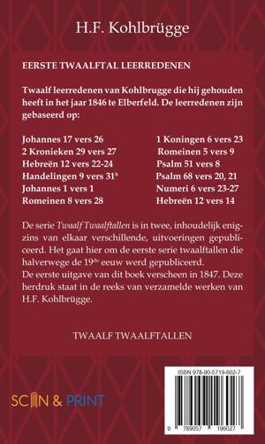 Twaalf leerredenen van Kohlbrugge die hij gehouden heeft in het jaar 1846 te Elberfeld. De leerredenen zijn gebaseerd op: