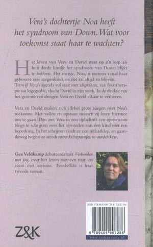Het leven van Vera en David in Twinkellicht van Gea Veldkamp staat op z'n kop als hun derde kindje het syndroom van Down blijkt te hebben. Het meisje, Noa, is meteen vanaf haar geboorte een zorgenkindje. Terwijl Vera's agenda vol staat met afspraken, van fysiotherapie tot logopedie, vlucht David in zijn werk. Dan ziet Vera in een tijdschrift een oproep om te schrijven over het opvoeden van een kind met een beperking. Ze parkeert het in haar achterhoofd, tot ze op een nacht niet kan slapen. Dan zet ze de computer aan om haar onrustige gedachten in woorden te vatten. Twinkellicht is de tweede roman van de talentvolle nieuwe auteur Gea Veldkamp.