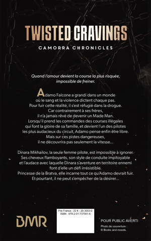 Adamo Falcone a grandi dans un monde où le sang et la violence dictent chaque pas. Pour fuir cette réalité, il s’est réfugié dans la drogue. Car contrairement à ses frères, il n’a jamais rêvé de devenir un Made Man. Lorsqu'il prend les commandes des courses illégales qui font la gloire de sa famille, et devient l’un des pilotes les plus audacieux du circuit, Adamo pense enfin être libre. Mais sur ces pistes dangereuses, il ne découvrira pas seulement la vitesse… Dinara Mikhailov, la seule femme pilote, est impossible à ignorer. Ses cheveux flamboyants, son style de conduite impitoyable et l’audace avec laquelle Dinara s’aventure en territoire ennemi font d’elle un défi irrésistible. Princesse de la Bratva, elle incarne tout ce qu’Adamo devrait fuir. Et pourtant, il ne peut s’empêcher de la désirer...