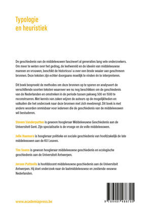 Dit boek bespreekt de methodes om deze bronnen op te sporen en analyseert de verschillende soorten teksten waarover we nu nog beschikken om de geschiedenis van de Nederlanden en omstreken in de periode tussen pakweg 500 en 1500 te reconstrueren. Met kennis van zaken wijzen de auteurs op de mogelijkheden en valkuilen die het onderzoek naar deze bronnen met zich meebrengt. Dit boek is met andere woorden onmisbaar voor iedereen die de geschiedenis van de middeleeuwen wil bestuderen.