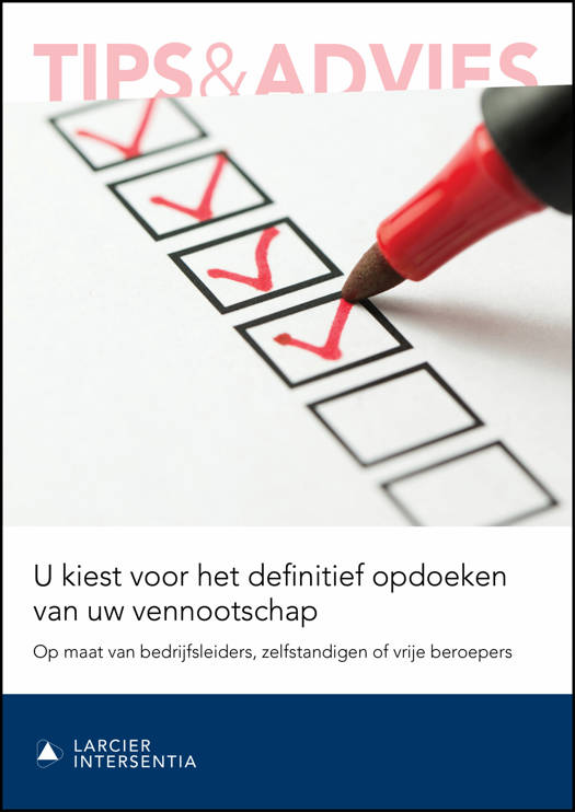 Dit boek begeleidt u van a tot z zodra u de beslissing genomen heeft om uw vennootschap op termijn definitief op te doeken. Van de eerste stap, namelijk de beslissing zelf, tot de laatste stap, zoals de publicatie van de afsluiting, de laatste btw-aangifte en de laatste aangifte van de vennootschapbelasting, beantwoorden we uw vragen en geven we tips, adviezen en heel praktische aandachtspunten. Zo heeft u alles in handen om voor u en uw vennootschap het optimale traject te bespreken met uw boekhouder.