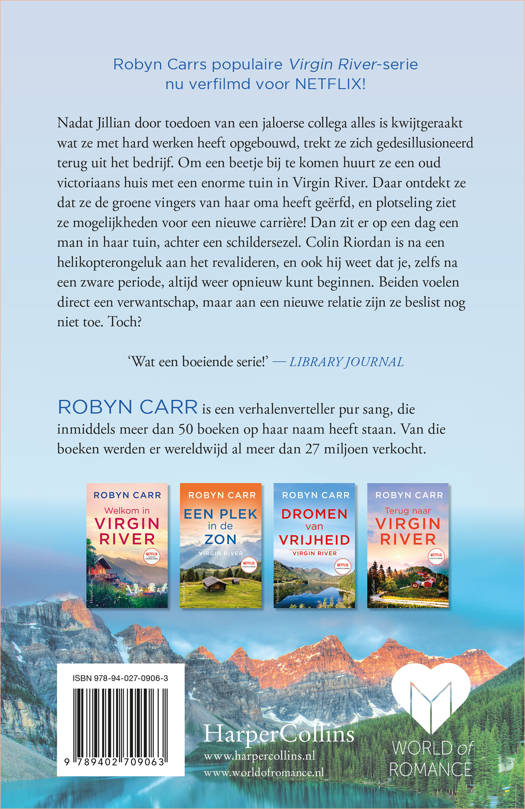 Nu ook als succesvolle serie op Netflix! De verhalen van Robyn Carr spelen zich af in het plaatsje Virgin River, idyllisch gelegen in de Californische natuur. Velen hebben hier de liefde gevonden, maar dat gaat niet altijd zonder slag of stoot! Soms duurt het even, maar uiteindelijk gaat de magie van Virgin River altijd werken…