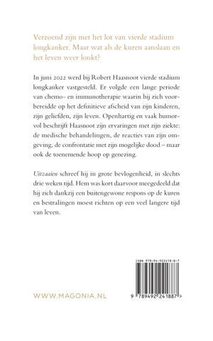 In juni 2022 werd bij Robert Haasnoot vierde stadium longkanker vastgesteld. Er volgde een lange periode van chemo- en immunotherapie waarin hij zich voorbereidde op het definitieve afscheid van zijn kinderen, zijn geliefden, zijn leven. Openhartig en vaak humorvol beschrijft Haasnoot zijn ervaringen met zijn ziekte: de medische behandelingen, de reacties van zijn omgeving, de confrontatie met zijn mogelijke dood – maar ook de toenemende hoop op genezing.