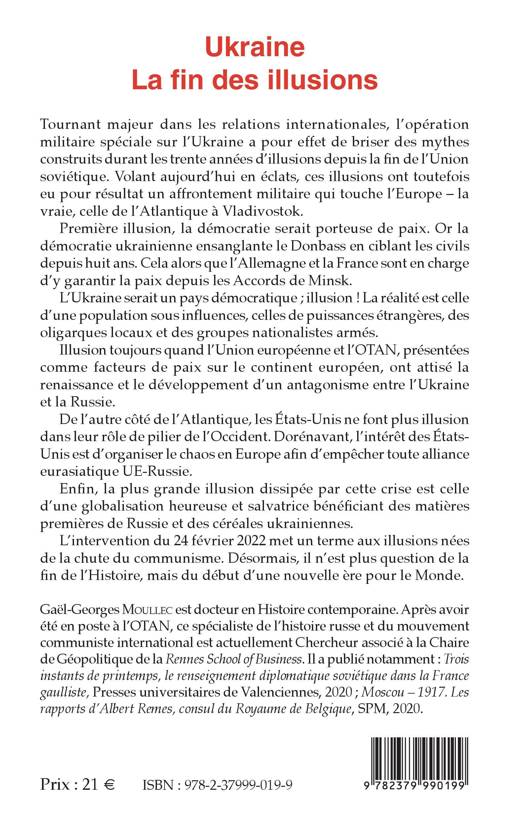 Tournant majeur dans les relations internationales, l'opération militaire spéciale sur l'Ukraine a pour effet de briser des mythes construits depuis la fin de l'Union soviétique. Volant aujourd'hui en éclats, ces illusions ont toutefois eu pour résultat un affrontement militaire qui touche l'Europe - la vraie, celle de l'Atlantique à Vladivostok. Première illusion, la démocratie serait porteuse de paix. Or la démocratie ukrainienne ensanglante le Donbass en ciblant les civils depuis huit ans. L'Ukraine serait un pays démocratique ; illusion ! La réalité est celle d'une population sous influences de puissances étrangères, des oligarques locaux et des groupes nationalistes armés. Illusion toujours quand l'Union européenne et l'OTAN ont attisé la renaissance et le développement d'un antagonisme entre l'Ukraine et la Russie. De l'autre côté de l'Atlantique, les États-Unis ne font plus illusion dans leur rôle de pilier de l'Occident. Dorénavant, l'intérêt des États-Unis est d'organiser le chaos en Europe afin d'empêcher toute alliance eurasiatique UE-Russie. Enfin, la plus grande illusion dissipée par cette crise est celle d'une globalisation heureuse et salvatrice bénéficiant des matières premières de Russie et des céréales ukrainiennes. L'intervention du 24 février 2022 met un terme aux illusions nées de la chute du communisme. Désormais, il n'est plus question de la fin de l'Histoire, mais du début d'une nouvelle ère pour le Monde.