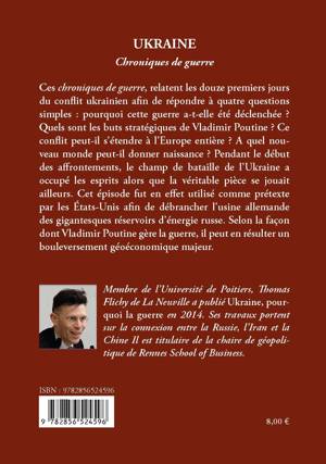 Ces chroniques de guerre, relatent les douze premiers jours du conflit ukrainien afin de répondre à quatre questions simples : pourquoi cette guerre a-t-elle été déclenchée ? Quels sont les buts stratégiques de Vladimir Poutine ? Ce conflit peut-il s'étendre à l'Europe entière ? A quel nouveau monde peut-il donner naissance ? Pendant le début des affrontements, le champ de bataille de l'Ukraine a occupé les esprits alors que la véritable pièce se jouait ailleurs. Cet épisode fut en effet utilisé comme prétexte par les États-Unis afin de débrancher l'usine allemande des gigantesques réservoirs d'énergie russe. Selon la façon dont Vladimir Poutine gère la guerre, il peut en résulter un bouleversement géoéconomique majeur. AUTEUR Membre de l'Université Paris IV - Sorbonne, Thomas Flichy de La Neuville est agrégé d'histoire et docteur en droit. Ses travaux portent sur la capacité des civilisations à transmettre la vie sur la longue durée. Professeur à l'École Spéciale Militaire de Saint-Cyr, il intervient dans de nombreuses universités étrangères, notamment à l'United States Naval Academy, la Higher School of Economics et l'Université d'Oxford.