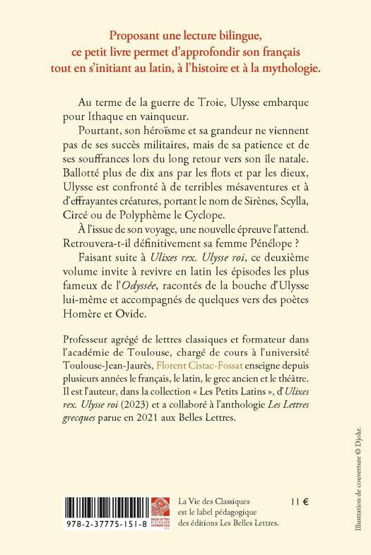 Faisant suite à Ulixes rex. Ulysse roi, ce deuxième volume invite à revivre en latin les épisodes les plus fameux de l’Odyssée, racontés de la bouche d’Ulysselui-même et accompagnés de quelques vers des poètes Homère et Ovide.