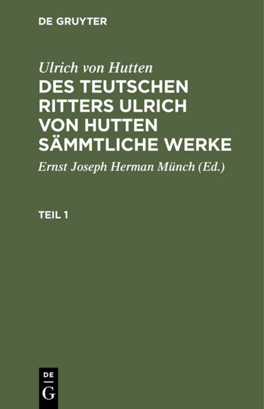 4. Ulrich Von Hutten: Des Teutschen Ritters Ulrich Von Hutten Sämmtliche Werke. Teil 1