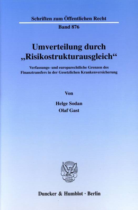 Der über 25 Milliarden DM p. a. umverteilende Risikostrukturausgleich bewirkt ruinöse, teils über 50 % der Einnahmen umfassende Zahlungspflichten vieler Krankenkassen. Verfahren und Datenerhebung zum Risikostrukturausgleich sind jedoch ungeeignet. Datenfehler ziehen fortlaufende Neuberechnungen nach sich. Krankenkassen wird eine solide Haushaltsplanung unmöglich. Umverteilungen heben den Wettbewerb auf, führen zur Einheitskasse und senken die Wirtschaftlichkeit der Gesetzlichen Krankenversicherung. "Gerechte Beitragssätze" werden nicht erreicht. Das neue Urteil des BVerfG zumFinanzausgleich der Länder verpflichtet den Gesetzgeber auf Maßstäbe eines nicht unangemessenen Ausgleichs und der haushaltswirtschaftlichen Planbarkeit. Dies bestätigt das aktuelle Maßstäbegesetz. Das Verbot der Nivellierung sowie der Umkehr der Finanzkraft-Relation ist auch für Krankenkassen anwendbar. Neuere Urteile des Europäischen Gerichtshofs zeigen zudem die Rechtswidrigkeit marktwidriger Sonderwege hinsichtlich der Sozialversicherungen.