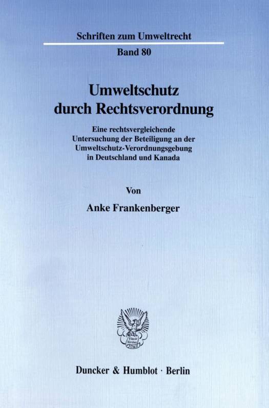 Die Arbeit hat zum Ziel, die Normsetzung der Exekutive stärker in die Rechtsformenlehre zu integrieren. Dazu wird das Verfahren der Verordnungsgebung in Deutschland und Kanada auf dem Gebiet des Umweltschutzes untersucht. Ausgehend von kanadischen Verfahrensgestaltungen wird ein Vorschlag für verfahrensmäßige Neuordnung im deutschen Recht gemacht.