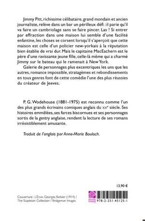 Jimmy Pitt, richissime celibataire, grand mondain et ancien journaliste, releve dans un bar un perilleux defi: il parie qu'il va faire un cambriolage sans se faire pincer. Las ! Si entrer par effraction dans une maison lui semble d'une facilite enfantine, les choses se corsent lorsqu'il s'apercoit que cette maison est celle d'un policier new-yorkais a la reputation bien etablie de vrai dur. Mais le capitaine MacEachern est le pere d'une ravissante jeune fille, celle-la meme qui a charme Jimmy sur le bateau qui le ramenait a New York. Galerie de personnages plus excentriques les uns que les autres, romance impossible, stratagemes et rebondissements en tous genres font de cette comedie l'une des plus reussies du createur de Jeeves.