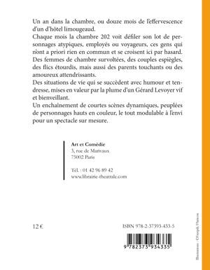 Un an dans la chambre, ou douze mois de l'effervescence d'un d'hôtel limougeaud. Chaque mois la chambre 202 voit défiler son lot de personnages atypiques, employés ou voyageurs, ces gens qui n'ont a priori rien en commun et se croisent ici par hasard. Des femmes de chambre survoltées, des couples espiègles, des flics étourdis, mais aussi des parents touchants ou des amoureux attendrissants. Des situations de vie qui se succèdent avec humour et tendresse, mises en valeur par la plume d'un Gérard Levoyer vif et bienveillant. Un enchaînement de courtes scènes dynamiques, peuplées de personnages hauts en couleur, le tout modulable à l'envi pour un spectacle sur mesure.