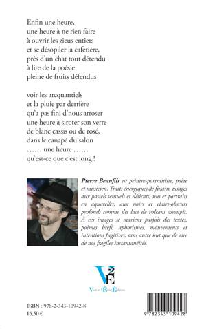 Ce petit recueil de poésie contemporaine est volontairement bref. Non pas par fainéantise de l'auteur, même s'il l'est certainement. Il s'agit, en vérité, d'un parti pris. Ceux qui le désirent pourront le lire en moins d'une heure. Cependant, un tel mode de lecture, bien que très efficace, ne manquera pas de présenter quelques inconvénients. Alors qu'en prenant le temps de compter 1, 2, 3 entre chaque mot, le lecteur va découvrir le nouvel univers, plus grand et plus parfumé dans lequel ce recueil souhaite le faire entrer, sans autre but que de le faire rire de nos fragiles instantanéités.