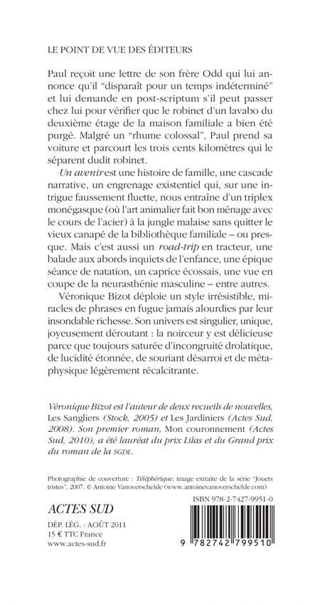«Un avenir» est une histoire de famille, une cascade narrative, un engrenage existentiel qui, sur une intrigue faussement fluette, nous entraîne d'un triplex monégasque (où l'art animalier fait bon ménage avec le cours de l'acier) à la jungle malaise sans quitter le vieux canapé de la bibliothèque familiale - ou presque. Mais c'est aussi un «road-trip» en tracteur, une balade aux abords inquiets de l'enfance, une épique séance de natation, un caprice écossais, une vue en coupe de la neurasthénie masculine - entre autres.
