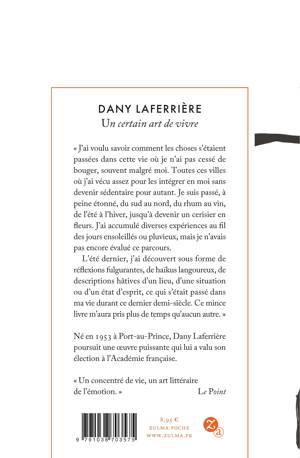 L'été dernier, j'ai découvert sous forme de réflexions fulgurantes, de haïkus langoureux, de descriptions hâtives d'un lieu, d'une situation ou d'un état d'esprit, ce qui s'était passé dans ma vie durant ce dernier demi-siècle. Ce mince livre m'aura pris plus de temps qu'aucun autre. »