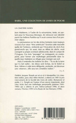 "Jean Maleterre, à l'aube de la soixantaine, tente, en partant pour le Nouveau-Mexique, de retrouver son identité parmi les Indiens Pueblos qu'il avait connus lors d'un premier séjour. La permanence en lui des échos lointains mais toujours vivaces d'un vieux "rêve américain" favorise cette nouvelle quête de l'enfance, renforcée par l'évocation du récit d'un grand-oncle qui, lui aussi, tout au début du siècle, avait consigné sa propre aventure adolescente, dans le campo de l'Uruguay. Ces trois "paysages" se conjuguent, en contrepoint, pour former une mythologie personnelle dans laquelle Jean Maleterre se réfugie pour tromper son exil. Mais il entendra les Indiens lui dire : "Tu es de la terre qui t'a fait naître ; tes dieux sont là-bas, où le Soleil se lève. Même si cette terre défigurée, profanée, est devenue une «réserve», elle sera ton cimetière indien." F. J. T.