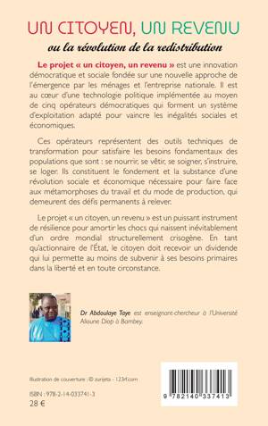 Le projet un citoyen, un revenu est une innovation démocratique et sociale fondée sur une nouvelle approche de l'émergence par les ménages et l'entreprise nationale. Il est au coeur d'une technologie politique implémentée au moyen de cinq opérateurs démocratiques qui forment un système d'exploitation adapté pour vaincre les inégalités sociales et économiques. Ces opérateurs représentent des outils techniques de transformation pour satisfaire les besoins fondamentaux des populations que sont: se nourrir, se vêtir, se soigner, s'instruire, se loger. Ils constituent le fondement et la substance d'une révolution sociale et économique nécessaire pour faire face aux métamorphoses du travail et du mode de production, qui demeurent des défis permanents à relever.