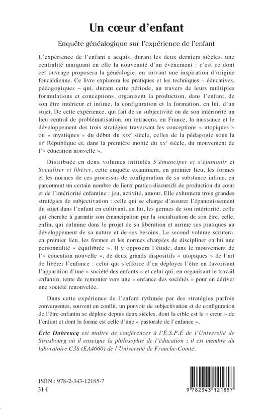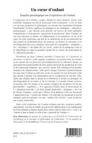 L'expérience de l'enfant a acquis, durant les deux derniers siècles, une centralité totalement nouvelle : cet ouvrage en proposera donc la généalogie. Il explorera les pratiques et les techniques (éducatives, pédagogiques) qui organisent la production de son être intérieur et intime, la configuration et la formation, en lui, d'un sujet. Distribuée en deux volumes, cette enquête retracera la naissance et le développement des stratégies de subjectivation et de configuration de l'être enfantin.