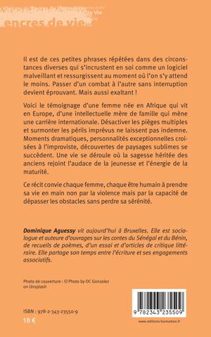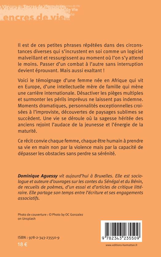 Il est de ces petites phrases répétées dans des circonstances diverses qui s'incrustent en soi comme un logiciel malveillant et ressurgissent au moment où l'on s'y attend le moins. Passer d'un combat à l'autre sans interruption devient éprouvant. Mais aussi exaltant ! Voici le témoignage d'une femme née en Afrique qui vit en Europe, d'une intellectuelle mère de famille qui mène une carrière internationale. Désactiver les pièges multiples et surmonter les périls imprévus ne laissent pas indemne. Ce récit convie chaque femme, chaque être humain à prendre sa vie en main non par la violence mais par la capacité de dépasser les obstacles sans perdre sa sérénité.