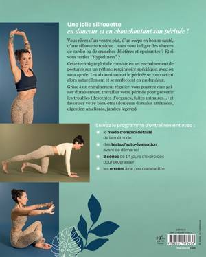 Cette technique globale consiste en un enchaînement de postures sur un rythme respiratoire spécifique, avec ou sans apnée. Les abdominaux et le périnée se contractent alors naturellement et se renforcent en profondeur. Grâce à un entraînement régulier, vous pourrez vous gainer durablement, travailler votre périnée pour prévenir les troubles (descentes d’organes, fuites urinaires…) et favoriser votre bien-être (douleurs dorsales atténuées, digestion améliorée, jambes légères).