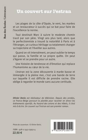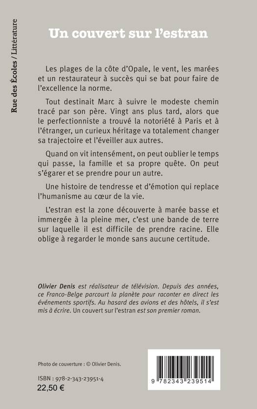 Les plages de la côte d'Opale, le vent, les marées et un restaurateur à succès qui se bat pour faire de l'excellence la norme.Tout destinait Marc à suivre le modeste chemin tracé par son père. Vingt ans plus tard, alors que le perfectionniste a trouvé la notoriété à Paris et à l'étranger, un curieux héritage va totalement changer sa trajectoire et l'éveiller aux autres. Quand on vit intensément, on peut oublier le temps qui passe, la famille et sa propre quête. On peut s'égarer et se prendre pour un autre. Une histoire de tendresse et d'émotion qui replace l'humanisme au coeur de la vie. L'estran est la zone découverte à marée basse et immergée à la pleine mer, c'est une bande de terre sur laquelle il est difficile de prendre racine. Elle oblige à regarder le monde sans aucune certitude.