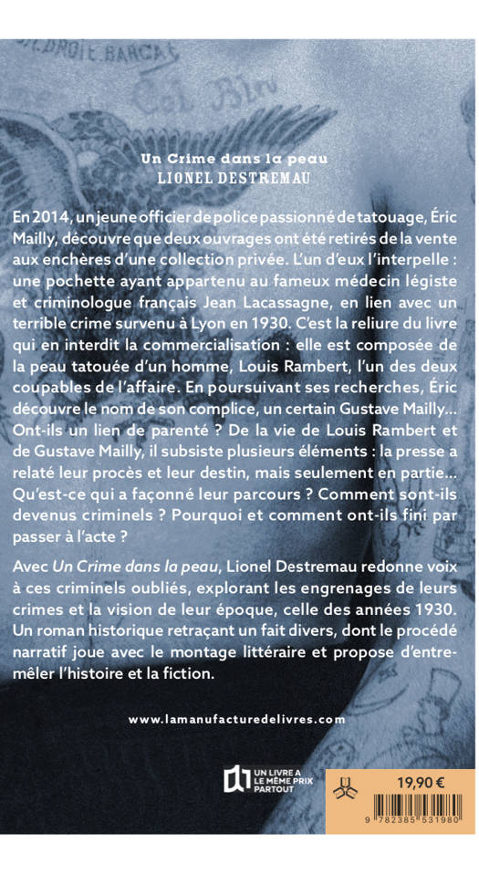 En 2014, un jeune officier de police passionné de tatouage, Éric Mailly, découvre que deux ouvrages sont retirés de la vente aux enchères d'une collection privée. L’un d’eux l’interpelle : une pochette ayant appartenu au fameux Jean Lacassagne, relative à un terrible crime qui eut lieu à Lyon en 1930. C'est la reliure du livre qui fait interdire sa commercialisation. Elle est en effet composée avec la peau tatouée d'un homme, Louis Rambert, un des deux coupables du crime. Éric découvre le nom de son complice, un certain Gustave Mailly… Ont-ils un lien de parenté ? De la vie de Louis Rambert et de Gustave Mailly, il existe plusieurs éléments : la presse a relaté leur procès et leur destin, mais en partie seulement... Qu'est-ce qui a construit leur parcours ? Comment sont-ils devenus criminels ? Pourquoi et comment ont-ils fini par passer à l'acte ?