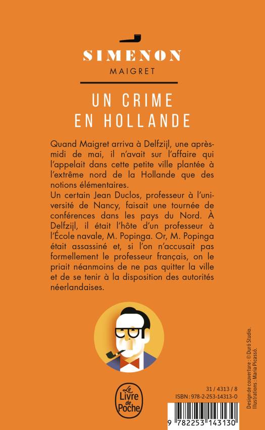 Quand Maigret arriva à Delfzijl, une après-midi de mai, il n’avait sur l’affaire qui l’appelait dans cette petite ville plantée à l’extrême nord de la Hollande que des notions élémentaires. Un certain Jean Duclos, professeur à l’université de Nancy, faisait une tournée de conférences dans les pays du Nord. A Delfzijl, il était l’hôte d’un professeur à l’Ecole navale, M. Popinga. Or, M. Popinga était assassiné et, si l’on n’accusait pas formellement le professeur français, on le priait néanmoins de ne pas quitter la ville et de se tenir à la disposition des autorités néerlandaises.
