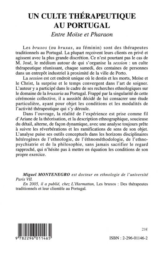 Les bruxos sont des thérapeutes traditionnels au Portugal. Cette étude ethnographique est consacrée à la session: un culte thérapeutique réunissant des centaines de personnes dans un entrepôt près de Porto. La session est cet endroit unique où le destin et les morts, Moïse et le Christ, la surprise et le temps convergent dans l'art de soigner. Il s'agit donc de décrire les conditions et les modalités de l'activité thérapeutique qui s'y déroule.
