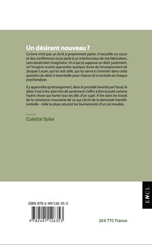 Ce livre n'est pas un écrit à proprement parler. Il recueille un cours et des conférences où je parle à un interlocuteur de ma fabrication, sans doute bien imaginaire. Un à qui je suppose un désir justement. Je l'imagine vouloir apprendre quelque chose de l'enseignement de Jacques Lacan, qui lui soit utile, qui lui serve à s'orienter dans cette question du désir si essentielle pour chacun et si centrale dans chaque psychanalyse. Il y apprendra qu'étrangement, dans le procédé inventé par Freud, le désir, il est à lire, bien loin de seulement s'offrir à être écouté comme l'autre chose qui hante tous les dits d'un sujet. À lire dans les tracés de la constance mouvante de ce qui s'écrit de la demande transférentielle —Â telle la pluie raturant les burinements d'un sol meuble.