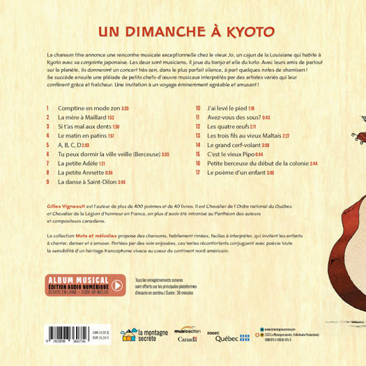 La chanson titre annonce une rencontre musicale exceptionnelle chez le vieux Jo, un cajun de la Louisiane qui habite à Kyoto avec sa conjointe japonaise. Les deux sont musiciens, il joue du banjo et elle du koto. Avec leurs amis de partout sur la planète, ils donneront un concert très zen, dans le plus parfait silence, à part quelques notes de shamisen ! Se succède ensuite une pléiade de petits chefs-d'oeuvre musicaux interprétés par des artistes variés qui leur confèrent grâce et fraîcheur.