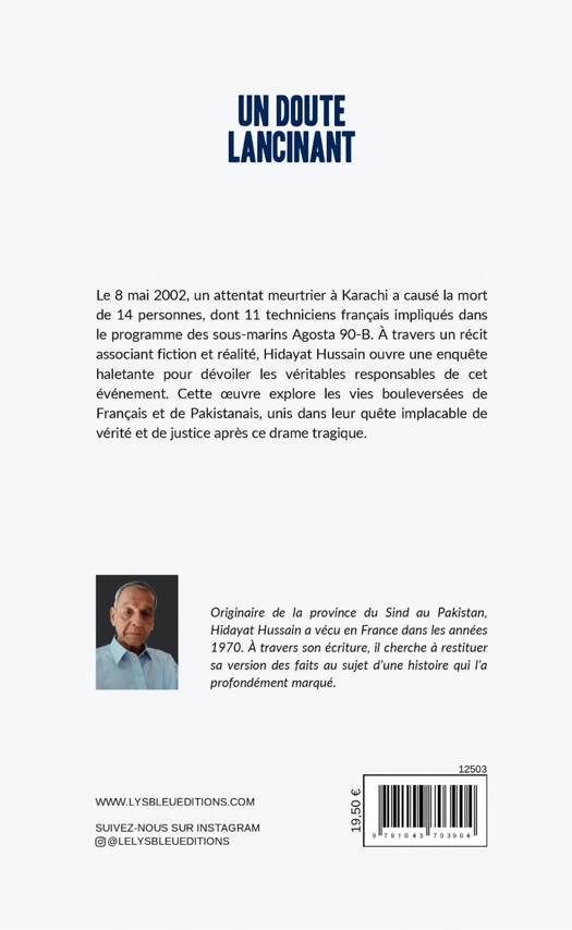Le 8 mai 2002, un attentat meurtrier à Karachi a causé la mort de 14 personnes, dont 11 techniciens français impliqués dans le programme des sous-marins Agosta 90-B. À travers un récit associant fiction et réalité, Hidayat Hussain ouvre une enquête haletante pour dévoiler les véritables responsables de cet événement. Cette oeuvre explore les vies bouleversées de Français et de Pakistanais, unis dans leur quête implacable de vérité et de justice après ce drame tragique.