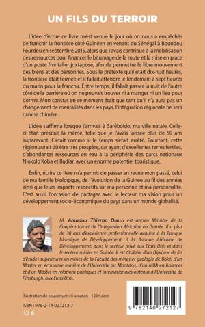 L idée d écrire ce livre m est venue le jour où on nous a empêchés de franchir la frontière côté Guinéen en venant du Sénégal à Boundou Fourdou en septembre 2015, alors que j avais contribué à la mobilisation des ressources pour financer le bitumage de la route et la mise en place d un poste frontalier juxtaposé, afin de permettre le libre mouvement des biens et des personnes. Sous le prétexte qu il était dix-huit heures, la frontière était fermée et il fallait attendre le lendemain à sept heures du matin pour la franchir. Entre temps, il fallait passer la nuit de l autre côté de la barrière où on ne pouvait trouver ni à manger ni un lieu pour dormir. Mon constat en ce moment était que tant qu il n y aura pas un changement de mentalités dans les pays, l intégration régionale ne sera qu une chimère. L idée s affirma lorsque j arrivais à Saréboido, ma ville natale. Celle-ci était presque la même, telle que je l avais laissée plus de 50 ans auparavant. C était comme si le temps s était arrêté. Pourtant, cette région aurait dû être très prospère, car ayant d excellentes terres fertiles, d abondantes ressources en eau à la périphérie des parcs nationaux Niokolo Koba et Badiar, avec un énorme potentiel touristique. Enfin, écrire ce livre m a permis de passer en revue mon passé, celui de ma famille biologique, de l évolution de la Guinée au fil des années ainsi que leurs impacts respectifs sur ma personne et ma personnalité. C est aussi l occasion de partager avec le lecteur ma vision pour un développement socio-économique du pays dans un monde globalisé.