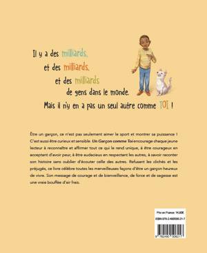 Être un garçon, ce n’est pas seulement aimer le sport et montrer sa puissance ! C’est aussi être curieux et sensible. Un Garçon comme Toi encourage chaque jeune lecteur à reconnaître et affirmer tout ce qui le rend unique, à être courageux en acceptant d’avoir peur, à être audacieux en respectant les autres, à savoir raconter son histoire sans oublier d’écouter celle des autres. Refusant les clichés et les préjugés, ce livre célèbre toutes les merveilleuses façons d’être un garçon heureux de vivre. Son message de courage et de bienveillance, de force et de sagesse est une vraie bouffée d’air frais.
