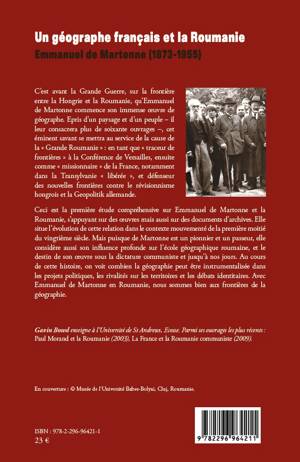 C'est avant la Grande Guerre, sur la frontière entre la Hongrie et la Roumanie, qu'Emmanuel de Martonne commence son immense oeuvre de géographe. Epris de son paysage et de son peuple, il se met au service de la cause de la "Grande Roumanie" : en tant que "traceur de frontières" à la Conférence de Versailles, puis comme "missionnaire" de la France, notamment dans la Transylvanie "libérée" et défenseur des nouvelles frontières contre le révisionnisme hongrois et la Geopolitik allemande.