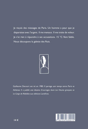 Je reçois des messages de Paris.?Un homme a peur que je disparaisse avec l'argent.?Il me menace.?Il me traite de voleur. Je n'ai rien à répondre à ses accusations.?15 °C. Vent faible. Nous découpons la galette des Rois.